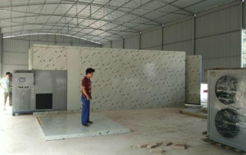 烘干機由庫房,熱泵加熱系統,冷凝排濕系統,溫度濕度自動控制系統四部分組成。